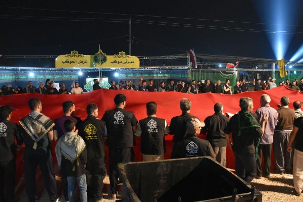 نصب پرچم الحسین یجمعنا در موکب خدام الحسین (ع)
